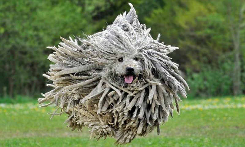 The Puli is renowned for its dense, natural dreadlocks. These rare dogs are affectionate and nimble, though their coats demand meticulous care. Used by Hungarian shepherds, Pulis are small yet tough, standing 16 to 17 inches tall and weighing 25 to 35 pounds. Their corded fur, forming protective ropes, shields against harsh weather and predators. Energetic and adept at herding, they often try to herd their families. Lively and sharp, they bond closely with owners. Early socialization and consistent training are crucial for these independent pups.
