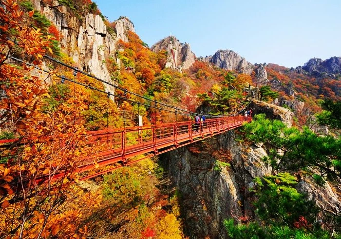 In South Korea’s smallest Wolchulsan National Park, the Cloud Bridge is a dramatic standout. Clinging to cliffs, it offers breathtaking views and a steep, daring crossing. Despite its intimidating aura, it lures visitors eager to master its heights and relish the scenery.