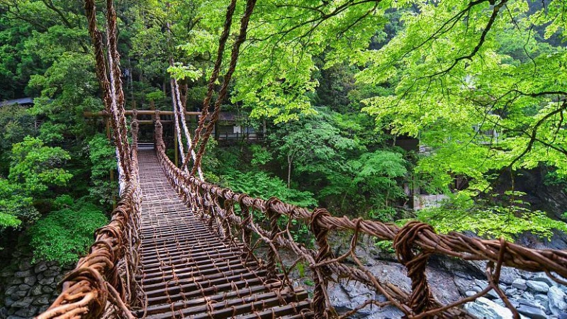 In the remote Iya Valley, the Kazurabashi Bridge, crafted from mountain vines, reflects Japan's ancient roots. Crossing it feels like stepping back in time, with creaking vines and wobbly planks hinting at its fragility. Steel cables, added every three years for safety, don't erase the thrill—or slight unease—as you glimpse the river far below through gaps.