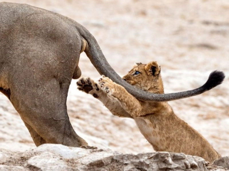 This lion cub just learned a tough lesson the adorable way. Some ideas don’t pan out as planned! This image catches a spark of curiosity and growth, highlighting the playful, daring spirit of young animals.